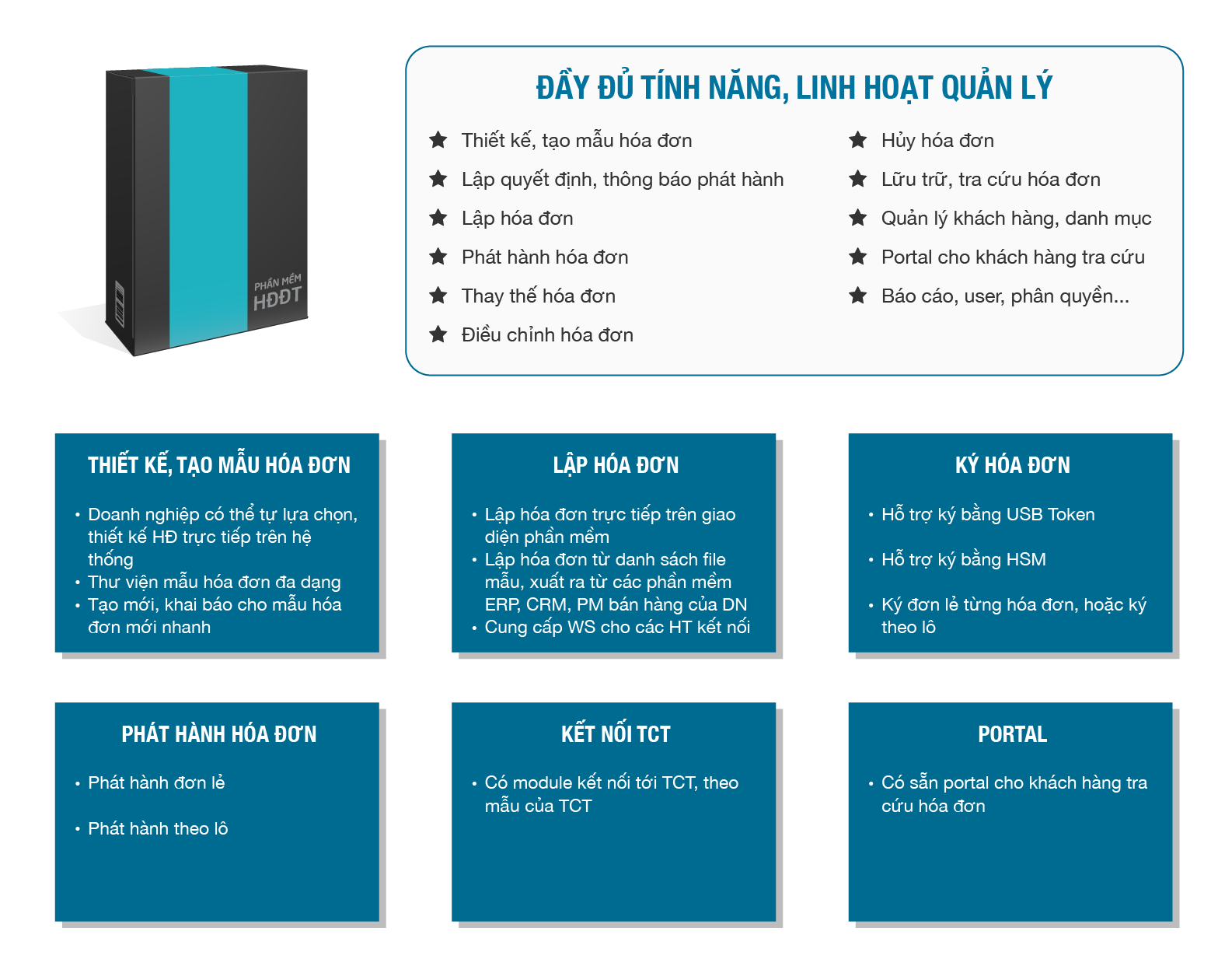 - Sẵn sàng kết nối với các phần mềm kế toán, bán hàng và các phần mềm quản trị khác để phát hành hóa đơn điện tử.